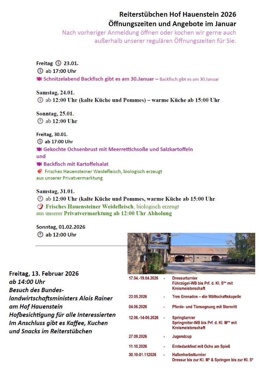 Samstag, 24. Januar ab 12:00 Uhr - warme Küche ab 15:00 Uhr